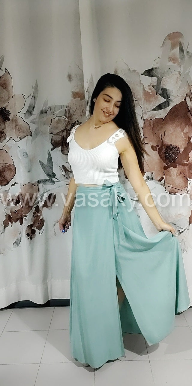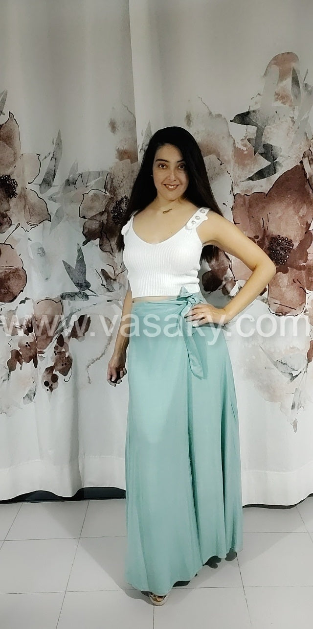 Talla única S-MLleva goma en la parte de atrás de la cintura. Lleva un botón en la parte interna para abrocharlo. Medidas: Cintura 32 cmEstira hasta 46 cmTalla habitual de la modelo:M/ 38 ( parte de abajo)S/36 (parte de arriba)Altura: 162 cm