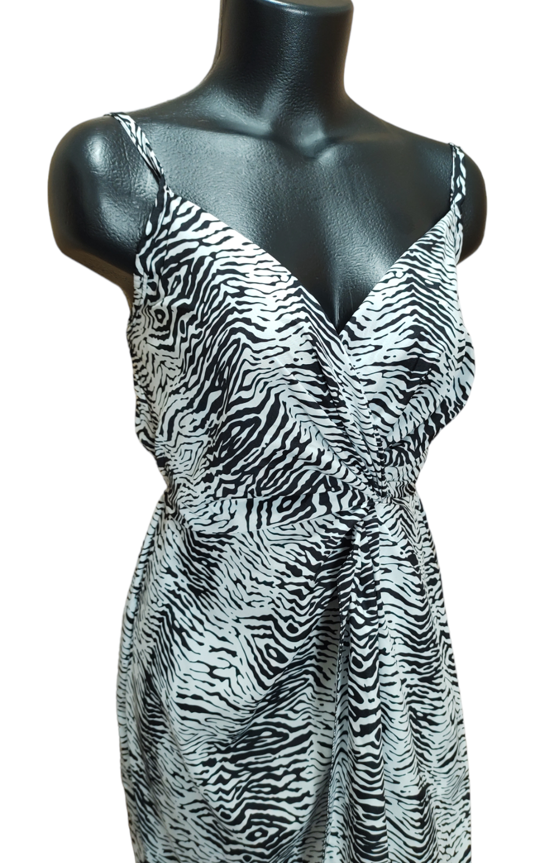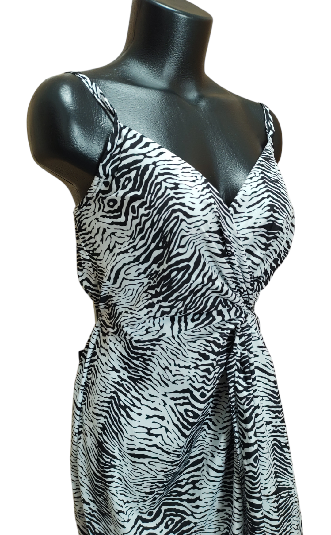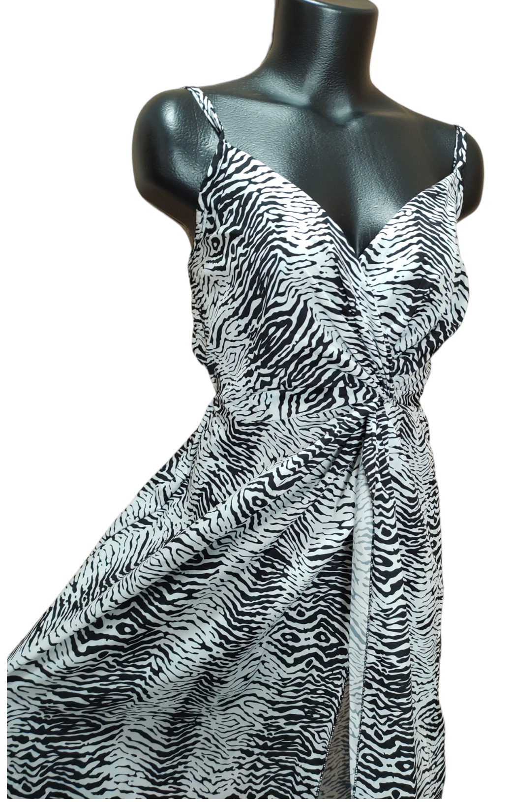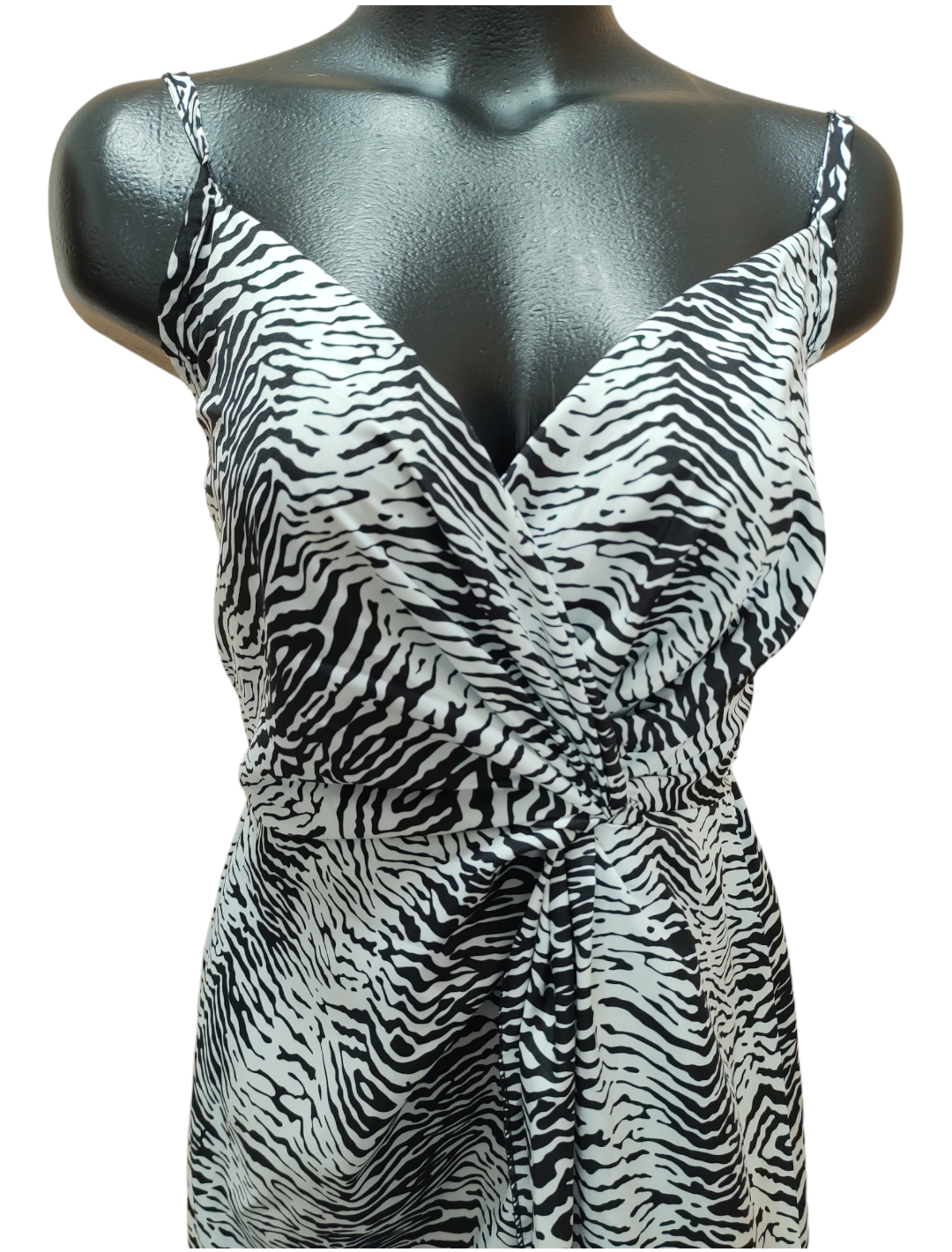 Tirante regulable. Goma en cintura y espalda. La abertura de la pierna es entera, hasta la cintura.