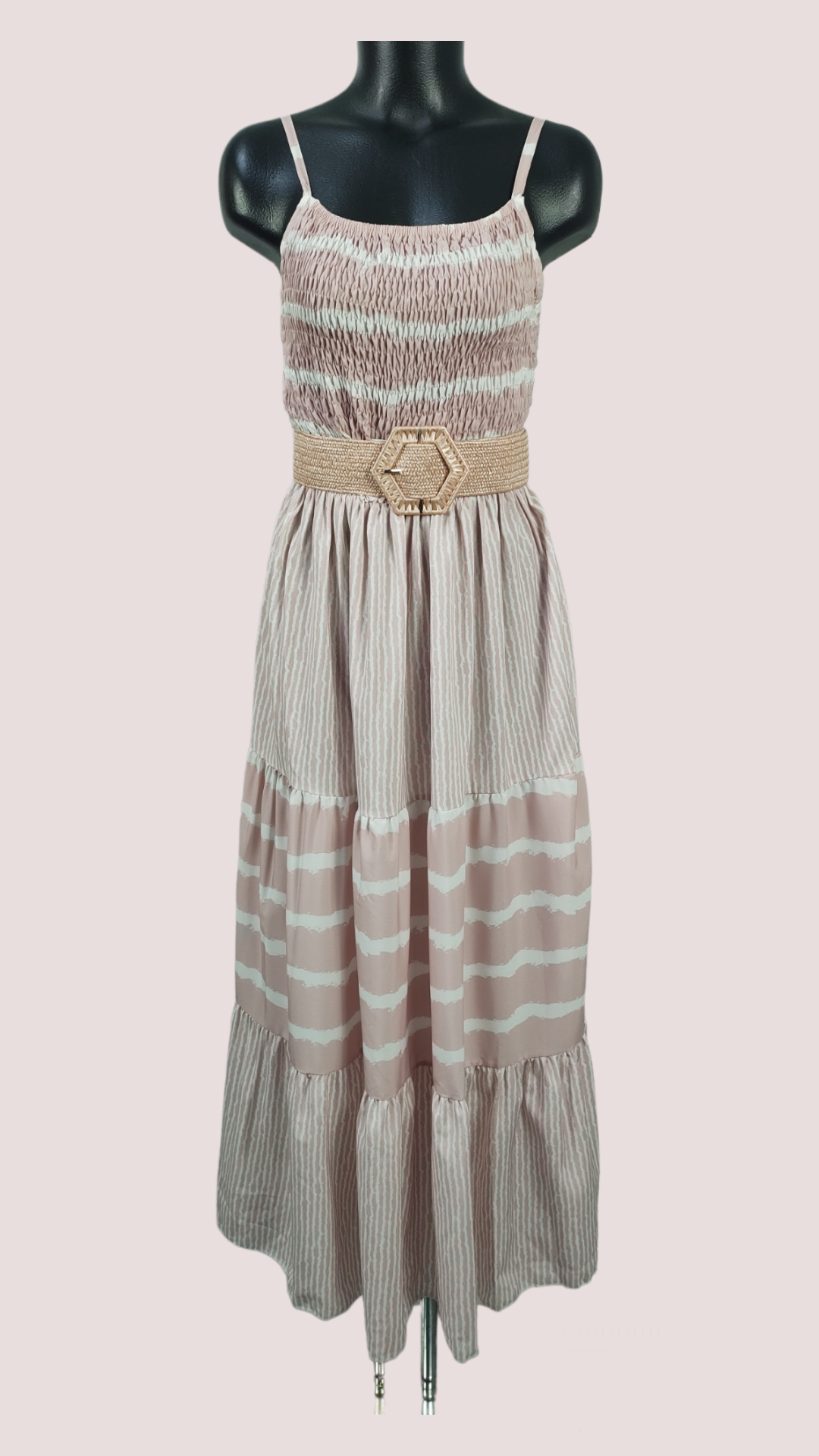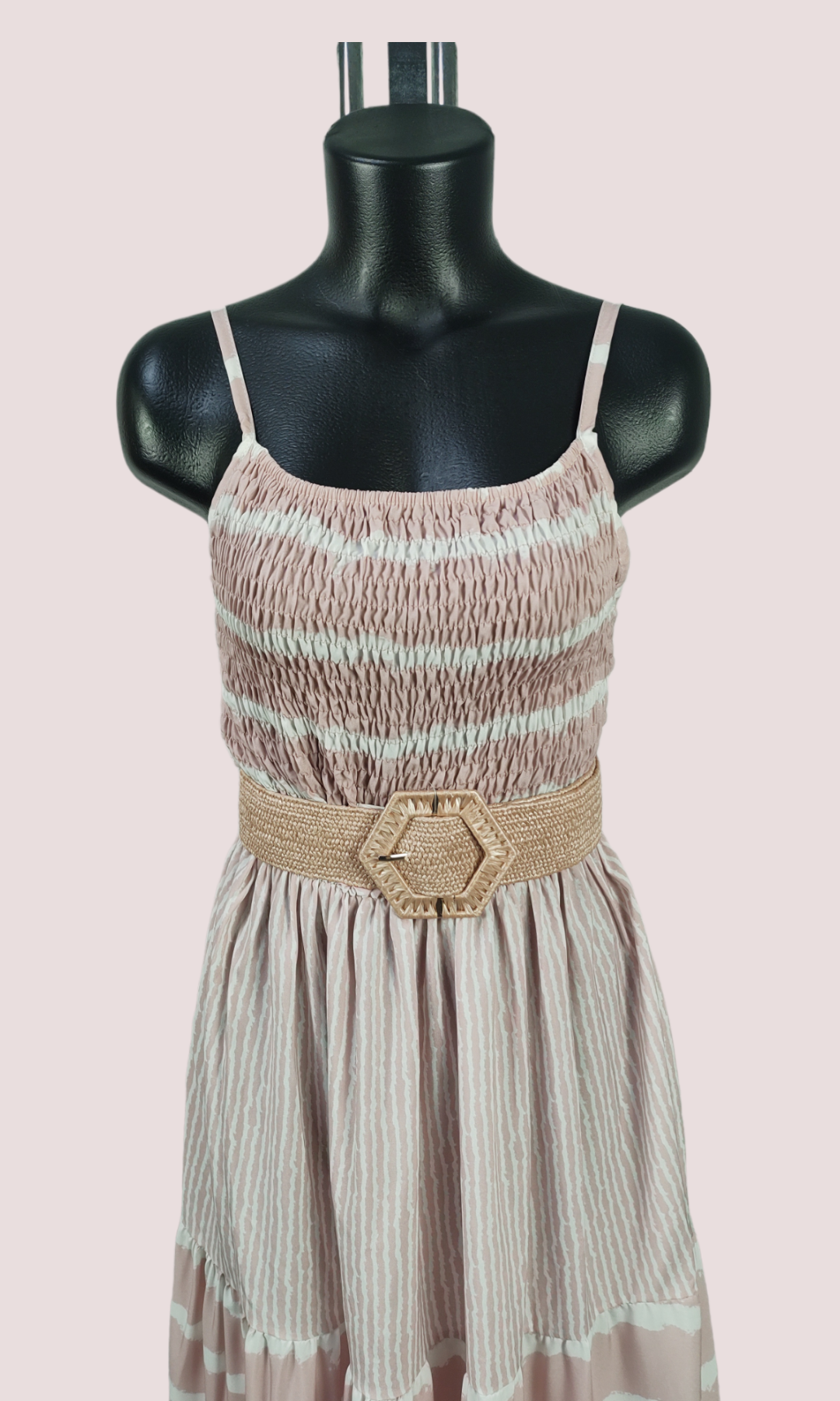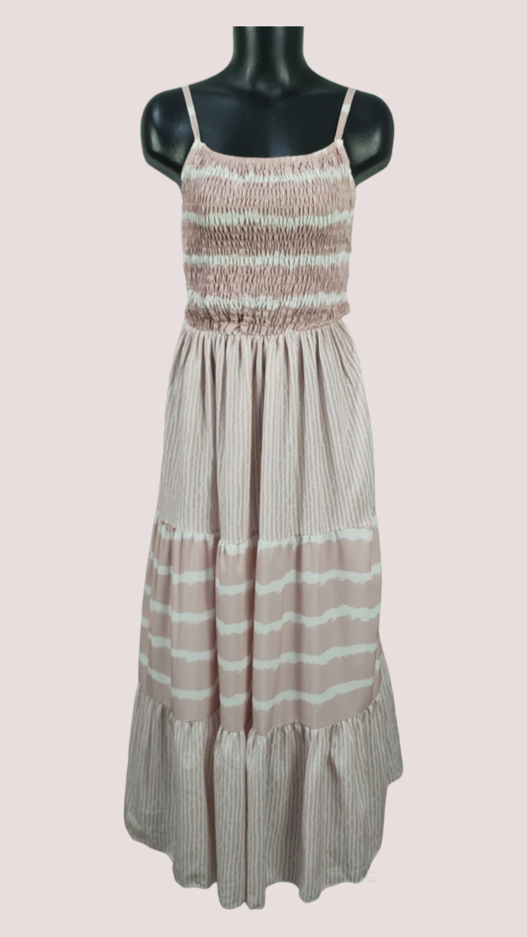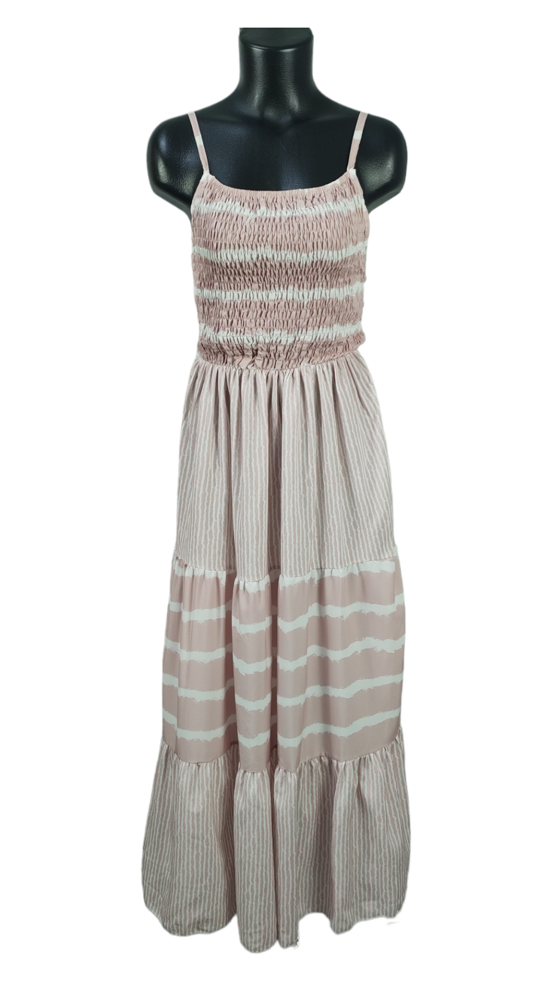 Vestido elástico muy fresquito. La parte de arriba, tanto el pecho como la espalda es de nido de abeja. Tirantes no regulables