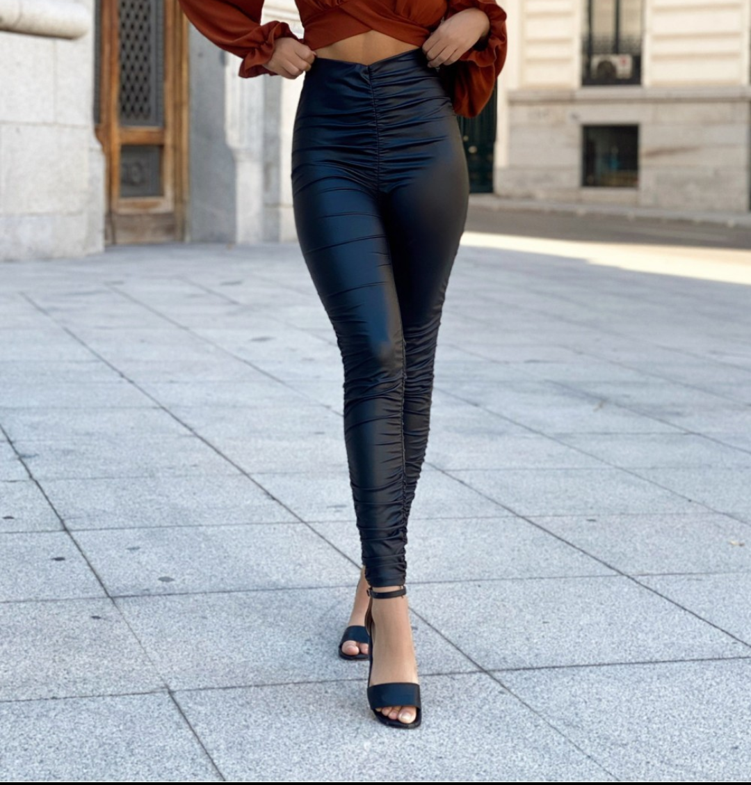 55% Viscosa 45% ViscosaTalla única S-M (36-40)Leggin polipiel fruncido elástico. Talla habitual de la modelo:M/ 38 ( parte de abajo)S/36 (parte de arriba)Altura: 162 cm
