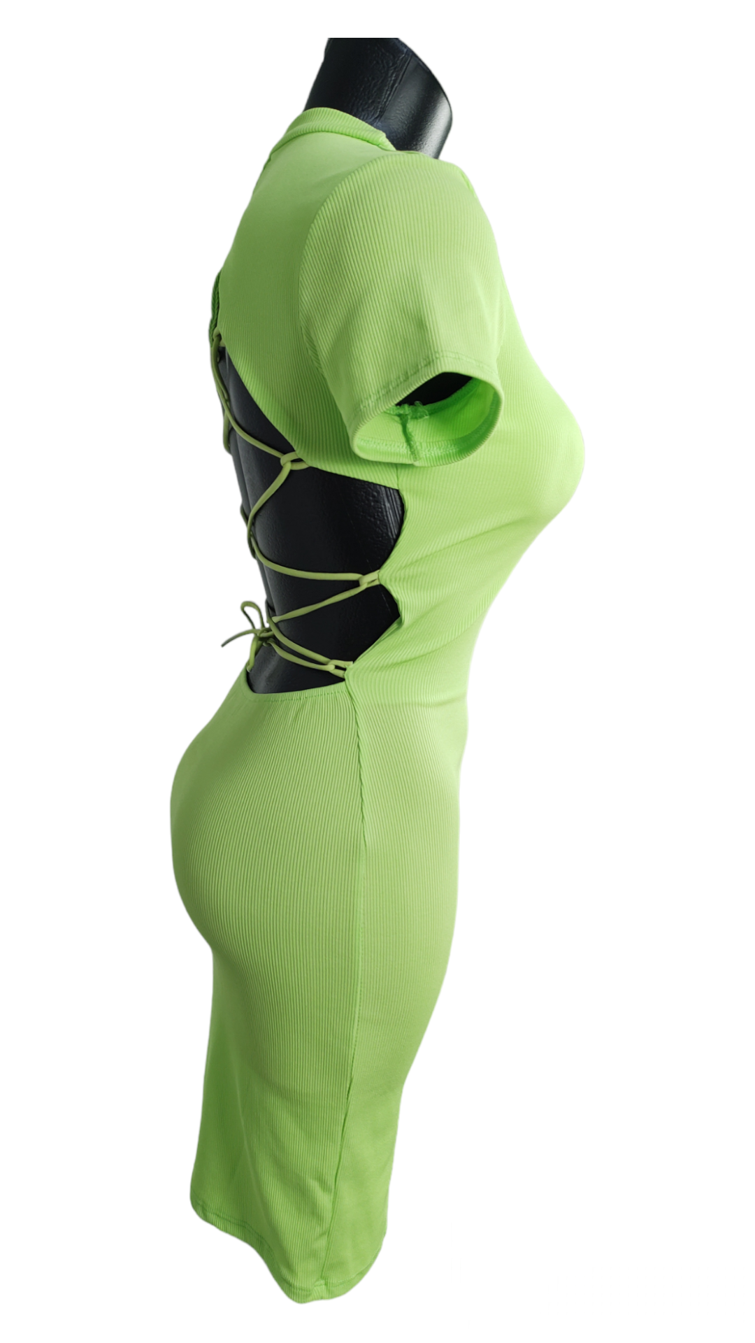 Vestido de canale con copas incorporadas y espalda descubierta. Es elástico.