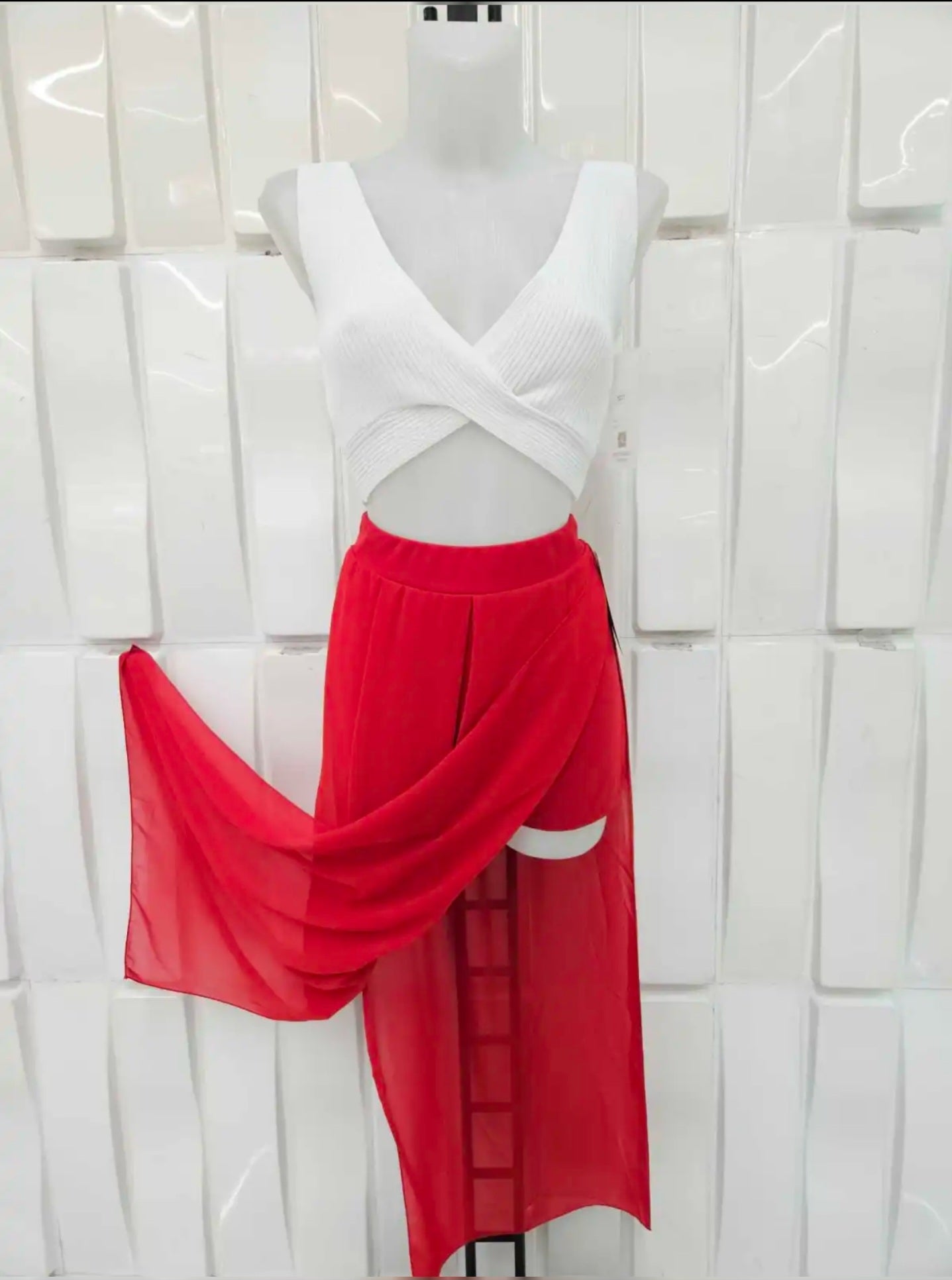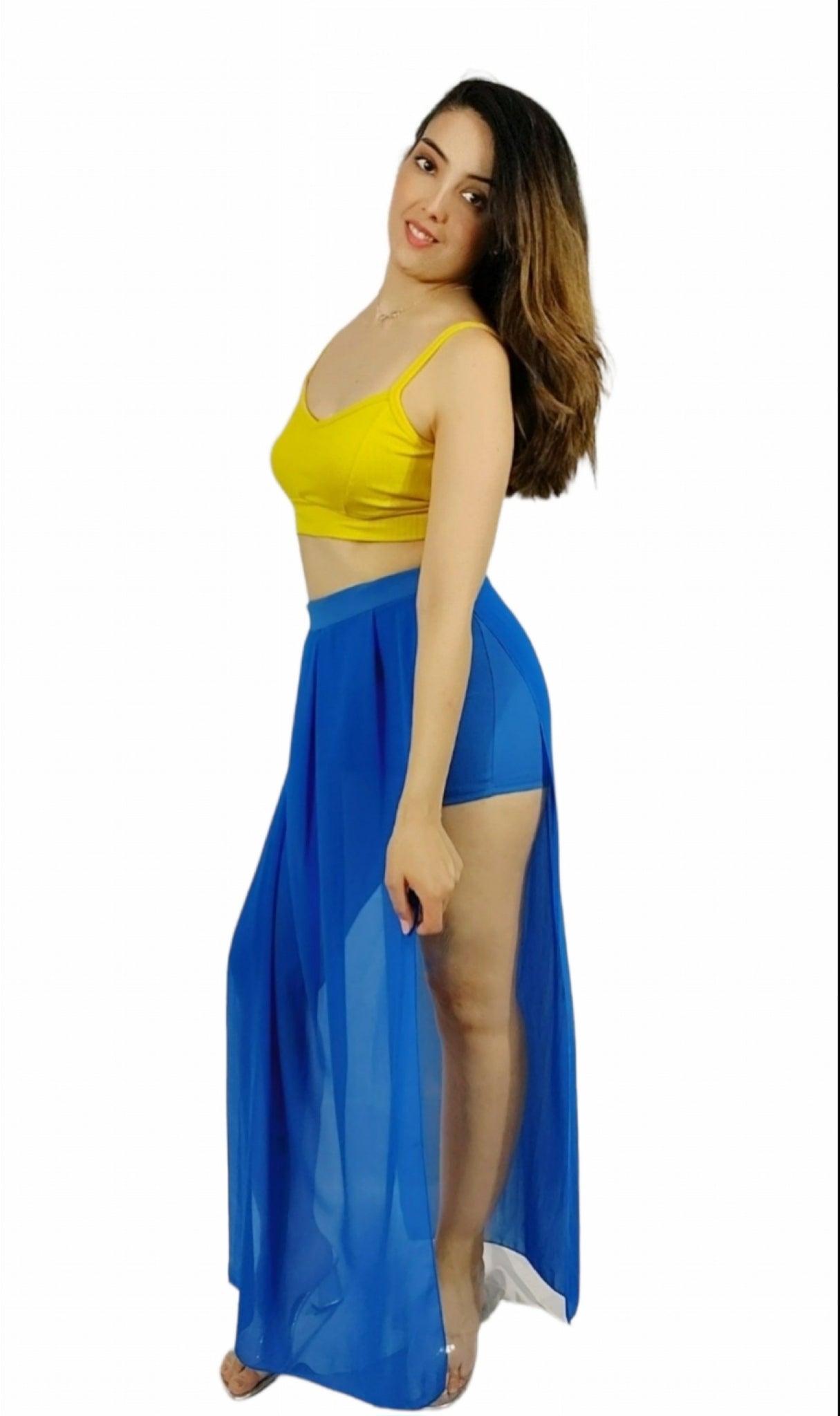 Falda pantalón abierta por los laterales. El pantalón es elástico.