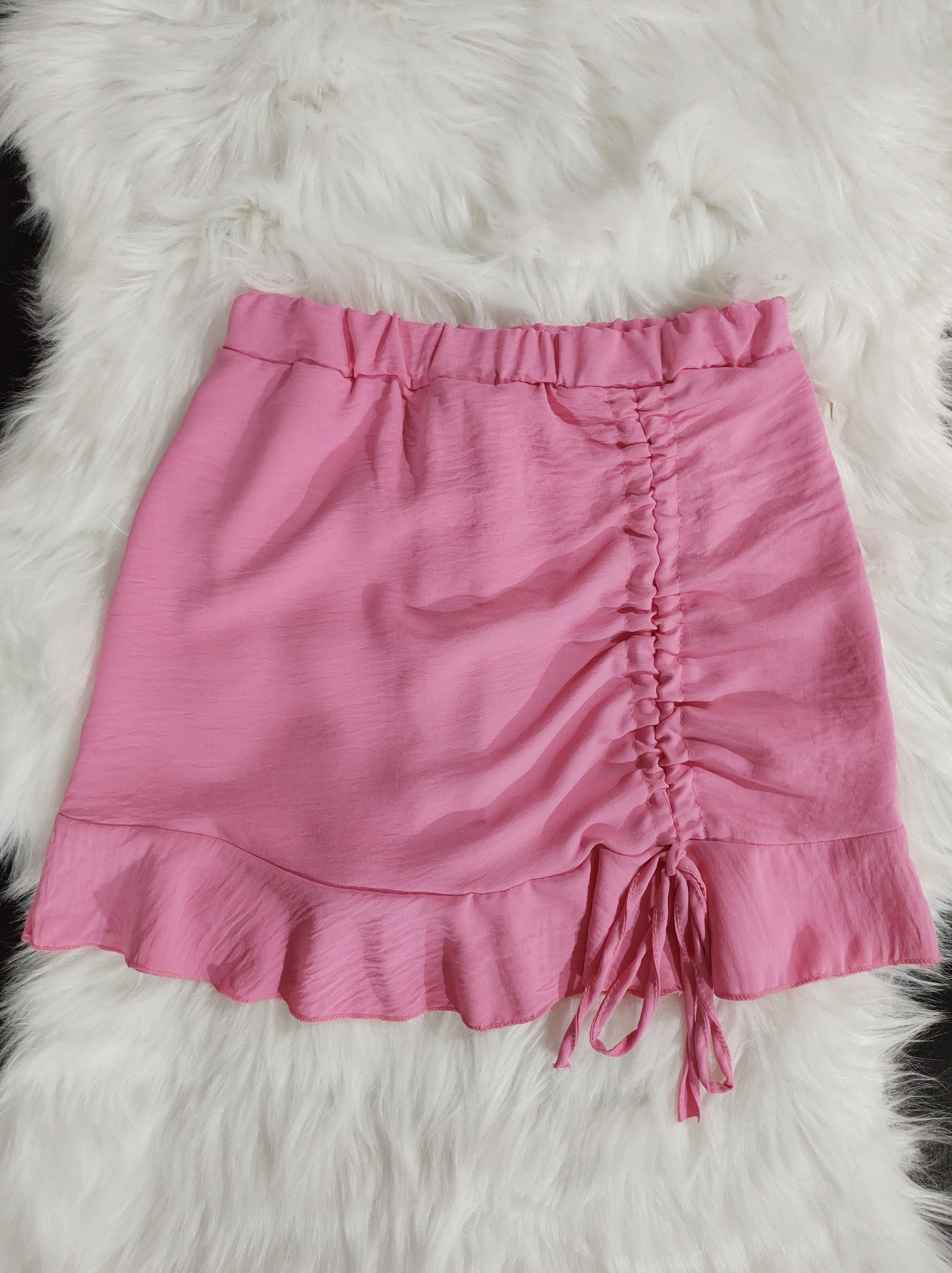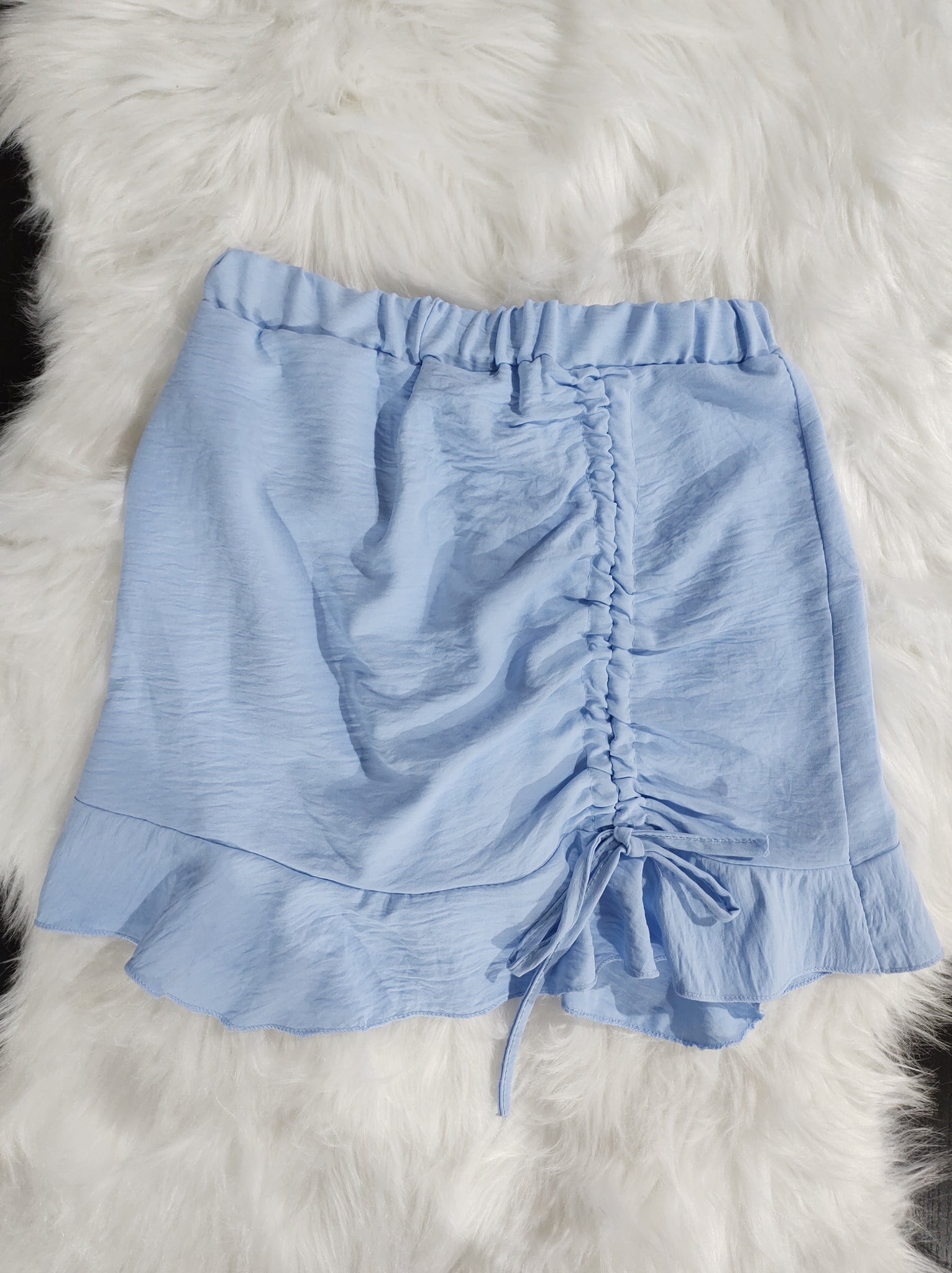 Falda pantalón elástica con goma en la cintura y fruncido en la parte delantera. Máximo talla 38.