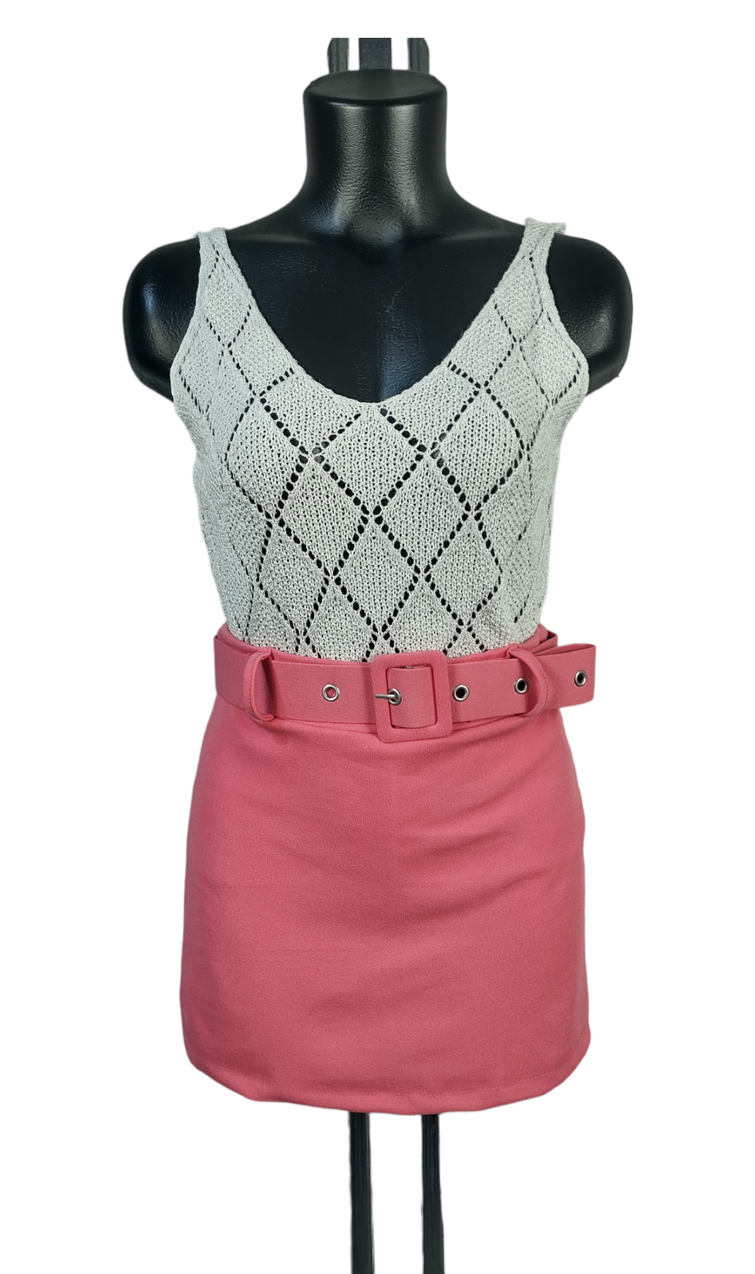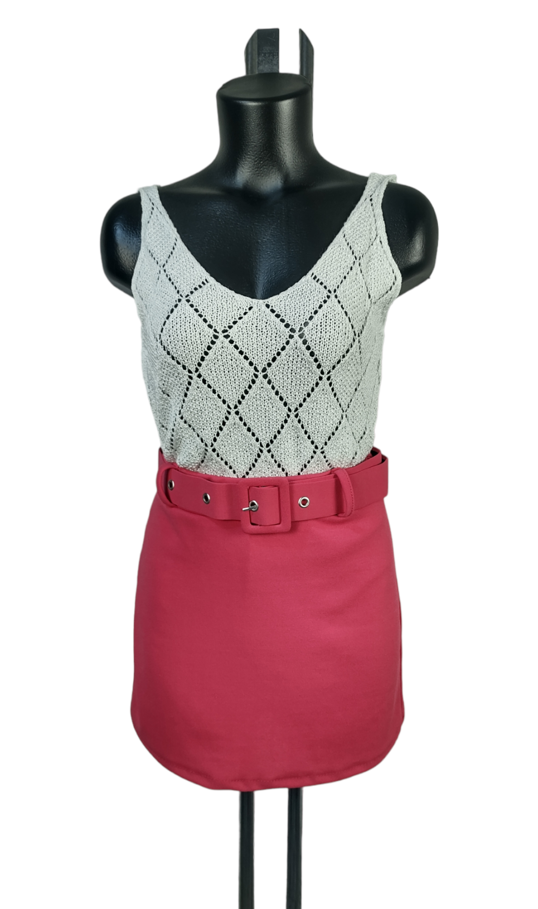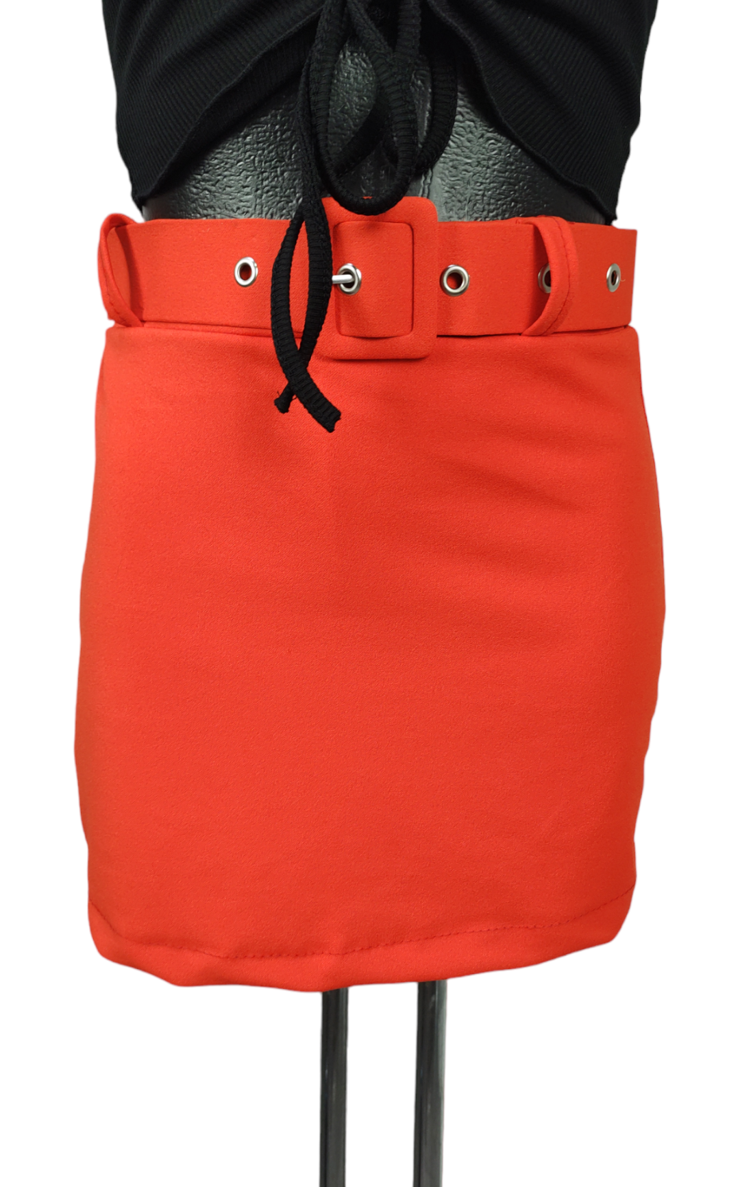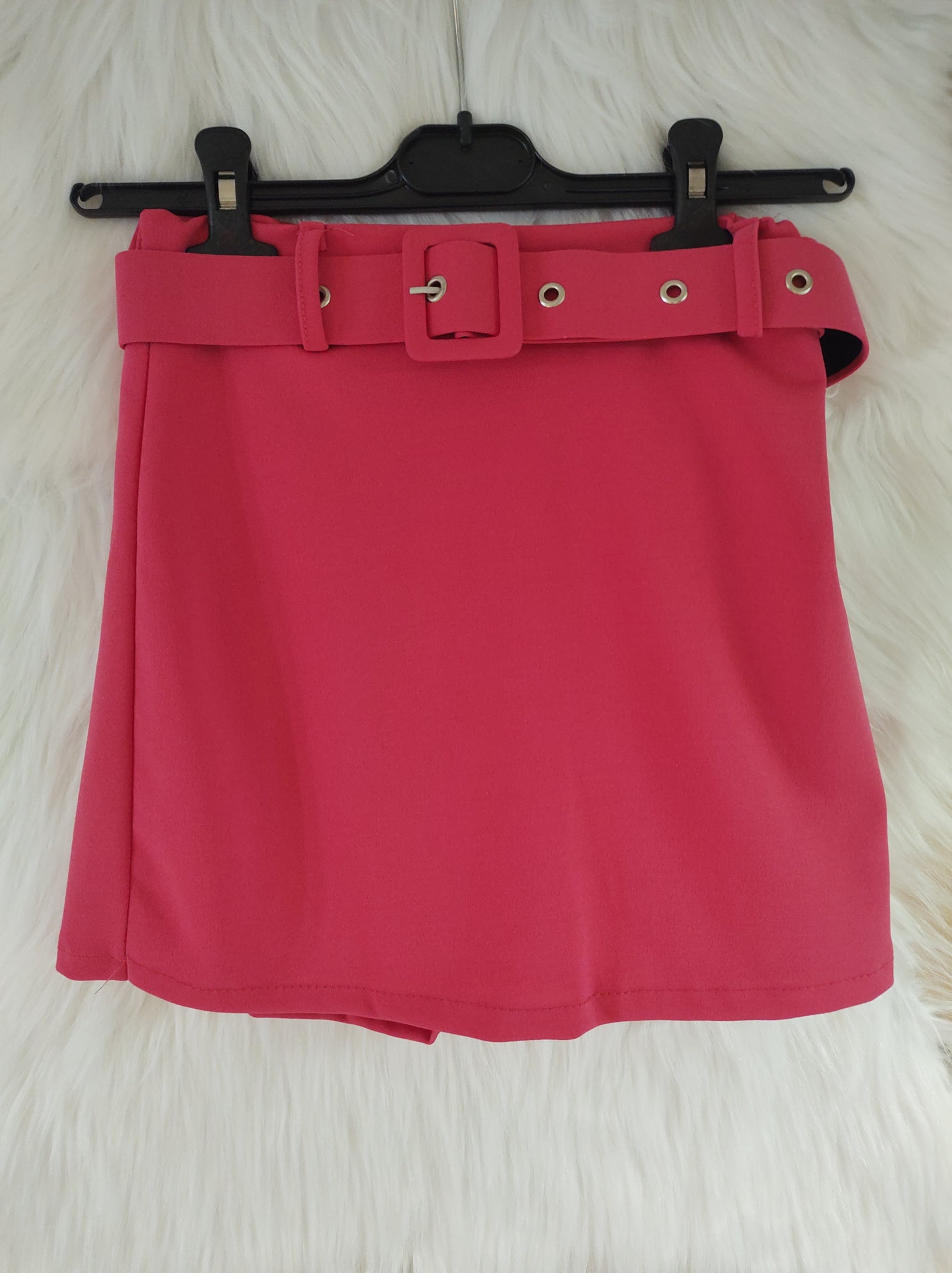 Falda pantalón elástica con cinturón incluido y goma en la cintura.