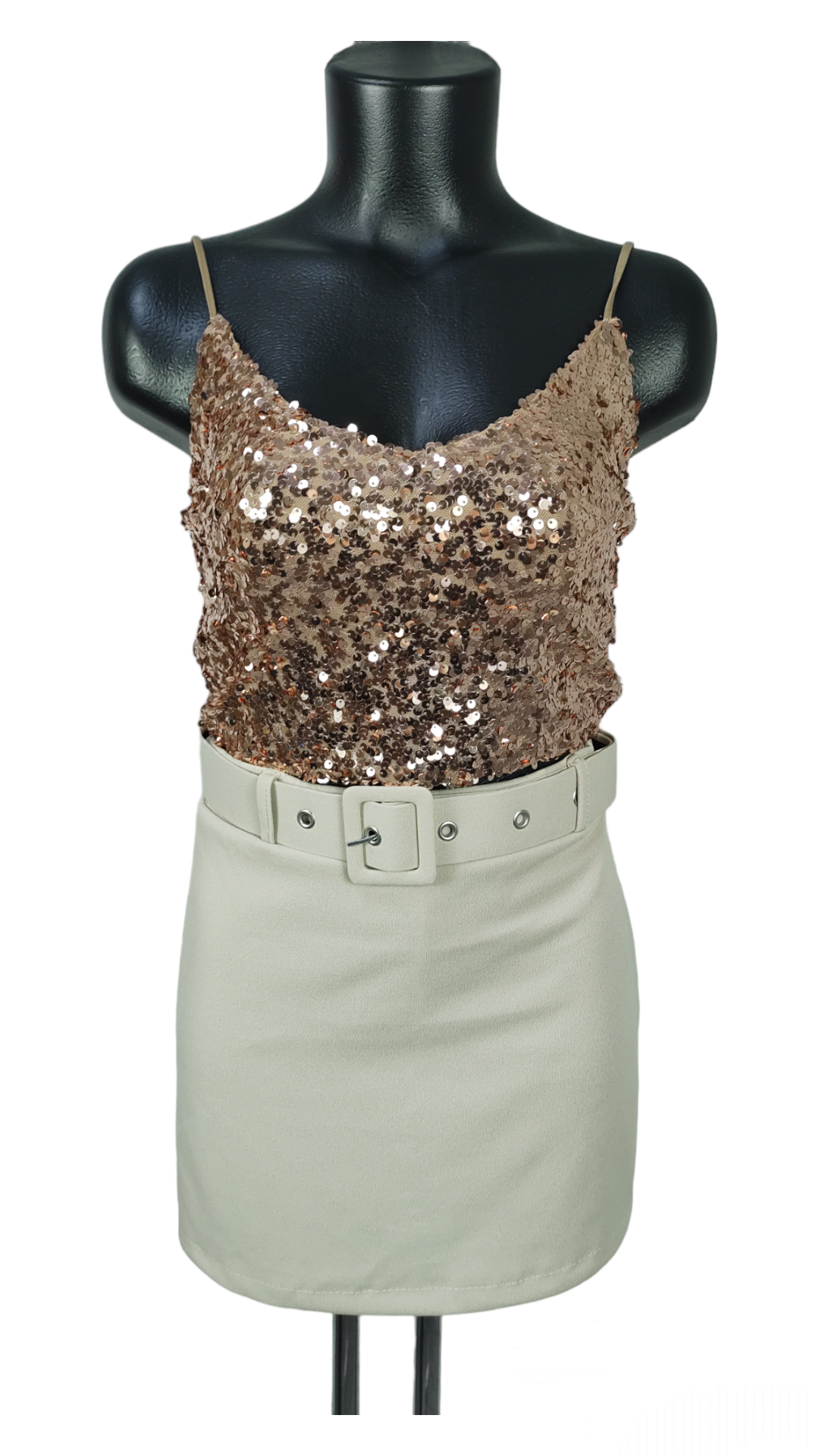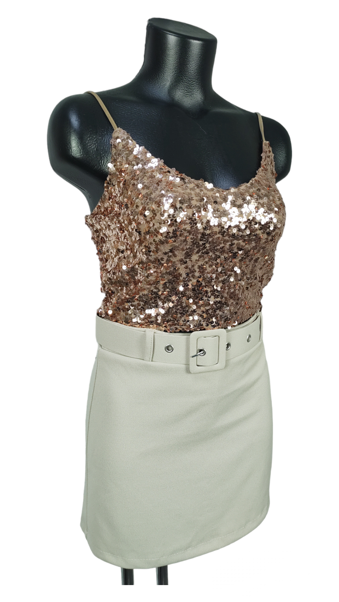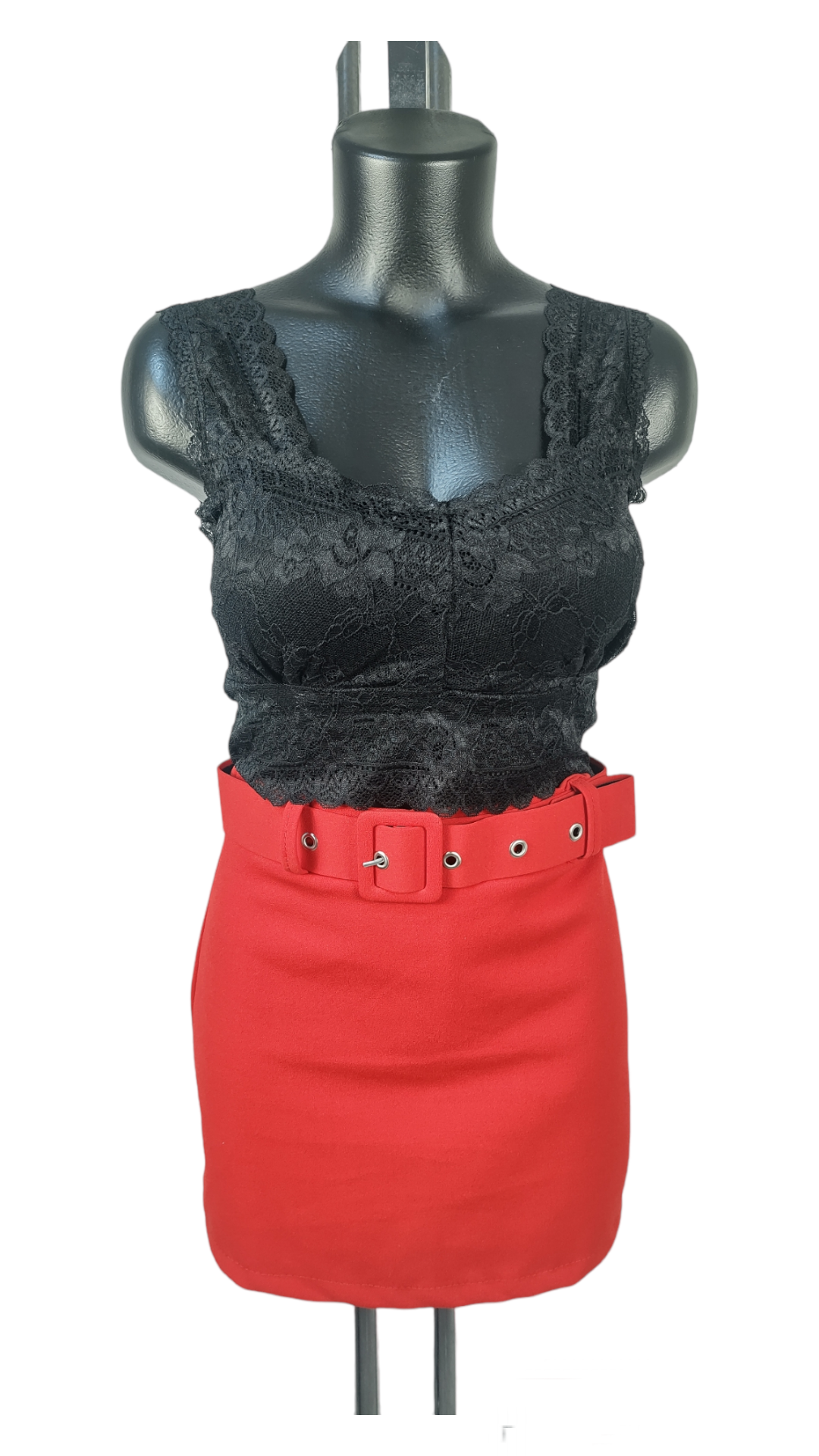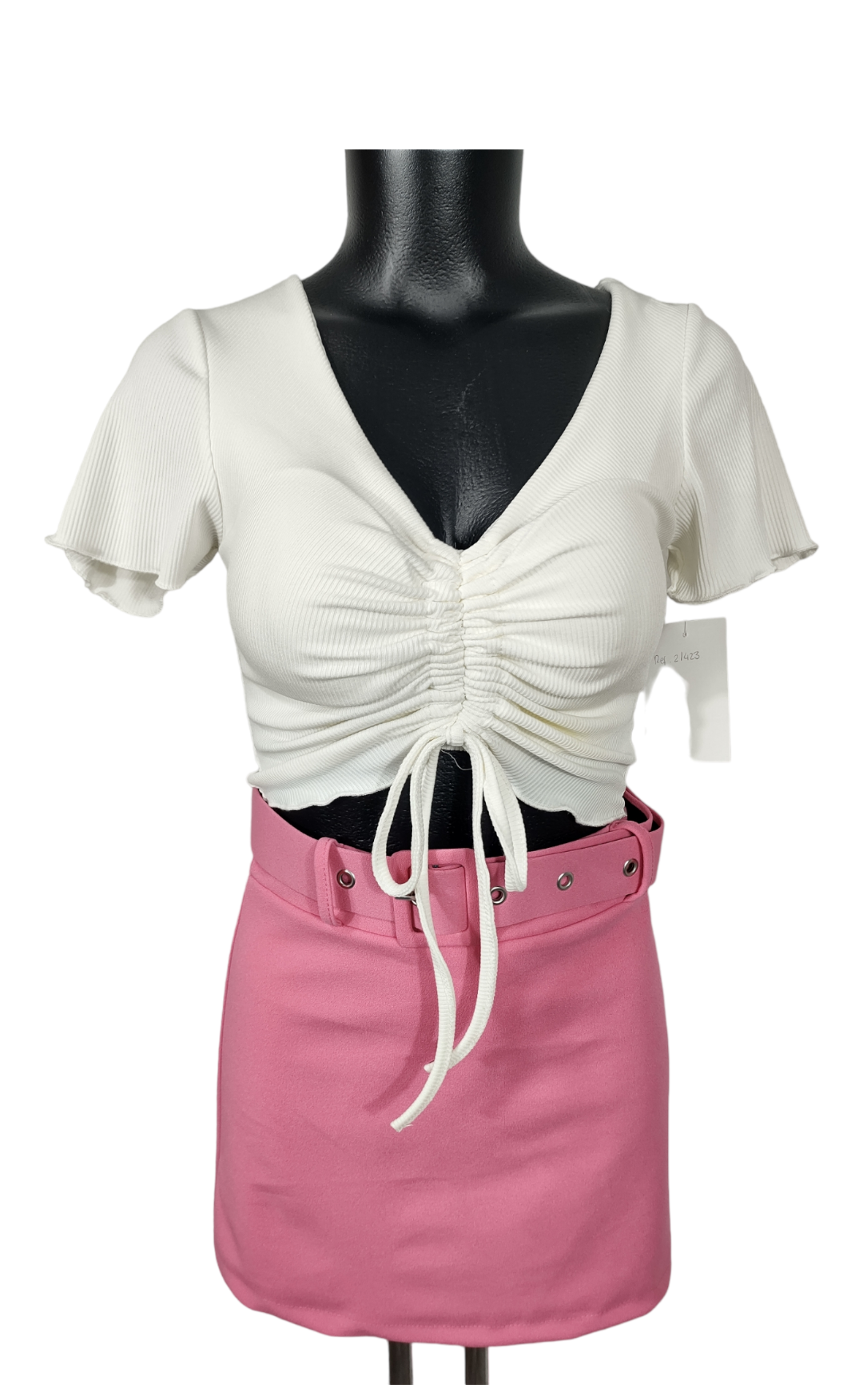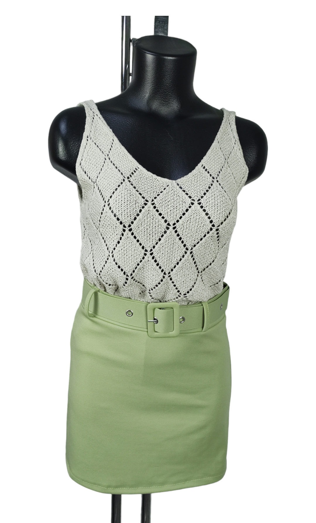 Falda pantalón elástica con cinturón incluido y goma en la cintura.