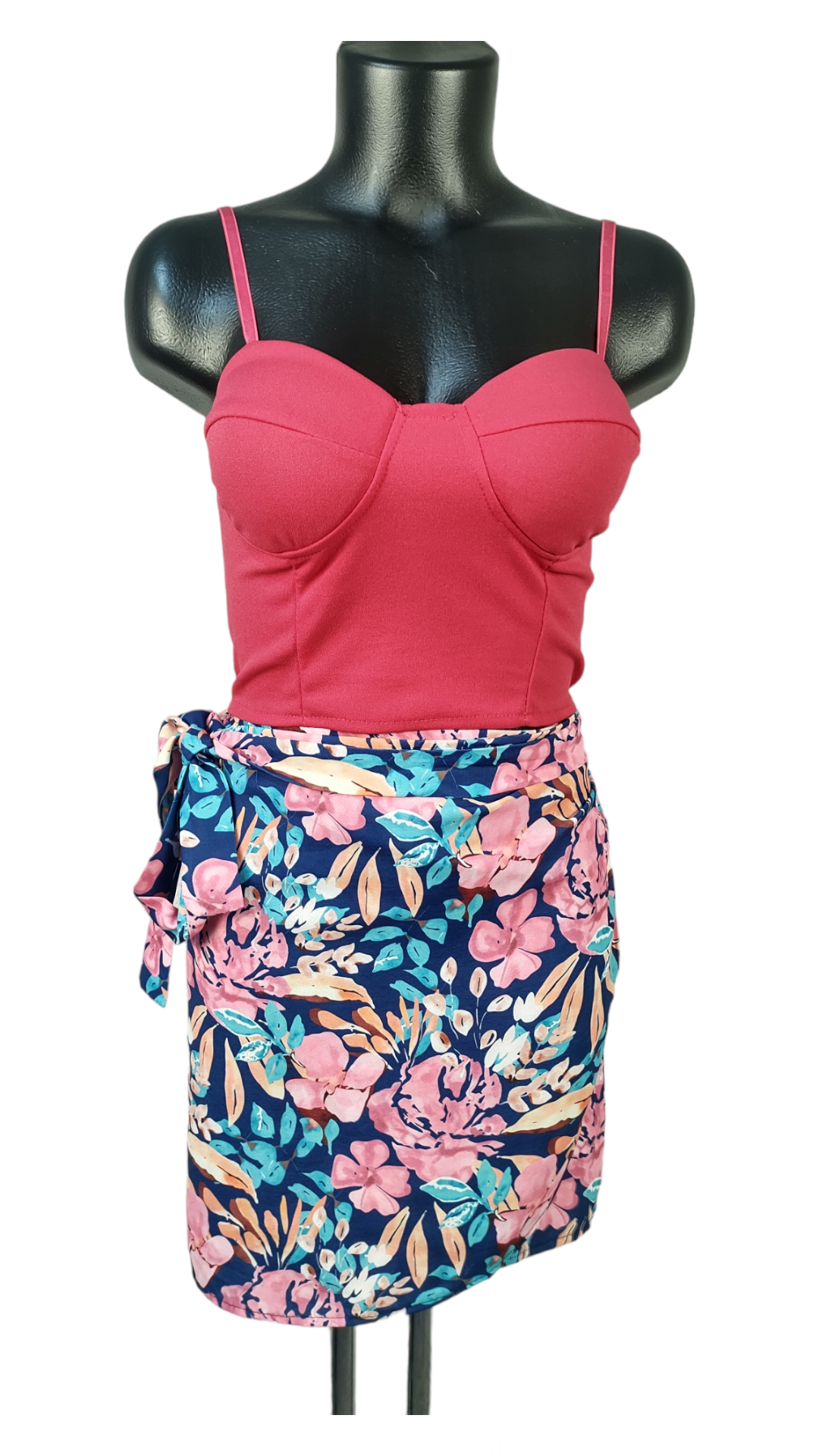 Falda pareo que se ajusta perfectamente a la medida que se quiera ya que se anuda en un lateral como los pareos.