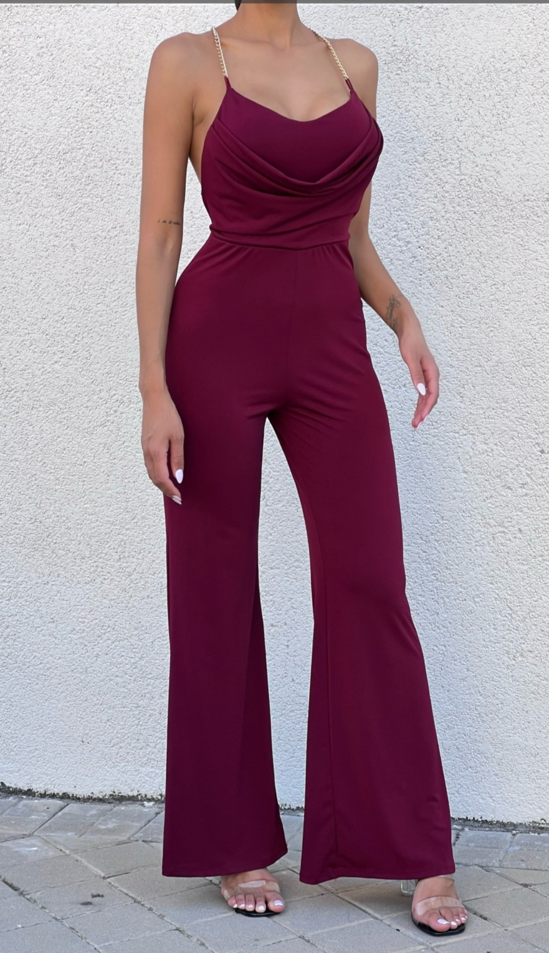 Talla única S a LMono elástico con copas incorporadas y tirantes de cadenas. Pantalón de campana